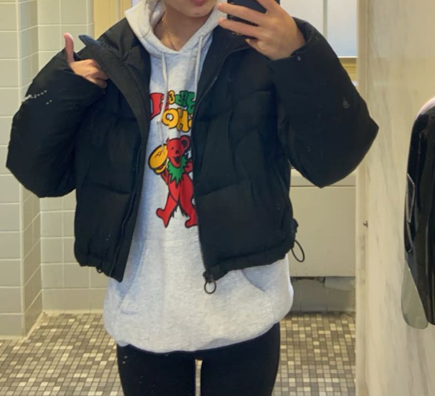 I loved my cropped puffer circa 2019, but whenever I wore it with oversized hoodies, it would look unbalanced and be uncomfortable to move in. The sleeves always felt too tight for their length.