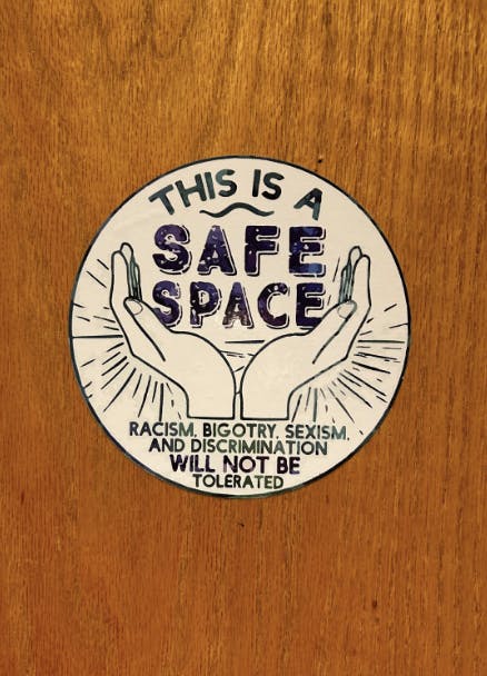 A sign reading "safe space" sets the intention for Lohrey's studio.