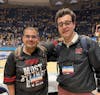 Assistant Sports Editor Cooper Meneghetti and Editor at Large Kethan Babu pose for a photo courtside at Hope Coliseum in Morgantown, West Virginia on March 21.