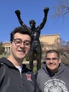 Assistant Sports Editor Cooper Meneghetti and Editor at Large Kethan Babu take a photo in front of the iconic Rocky Steps at the Philadelphia Museum of Art on March 21.