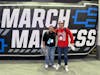 Assistant Sports Editor Cooper Meneghetti and Editor at Large Kethan Babu stand in front of a March Madness sign in Xfinity Mobile Arena on March 20.