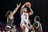 Junior wing Eian Elmer goes for a layup against Western Michigan at Millett Hall on Jan. 6