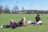 Students enjoy the warm weather by tanning on Cook Field.
