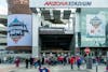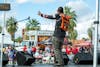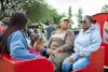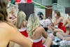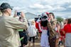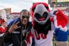 Redhawk fans pose with Swoop for a photo during the tailgate.
