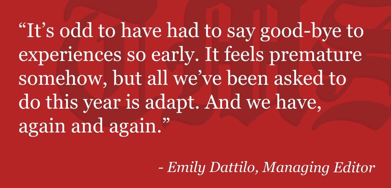 It’s odd to have had to say good-bye to experiences so early. It feels premature somehow, but all we’ve been asked to do this year is adapt. And we have, again and again.